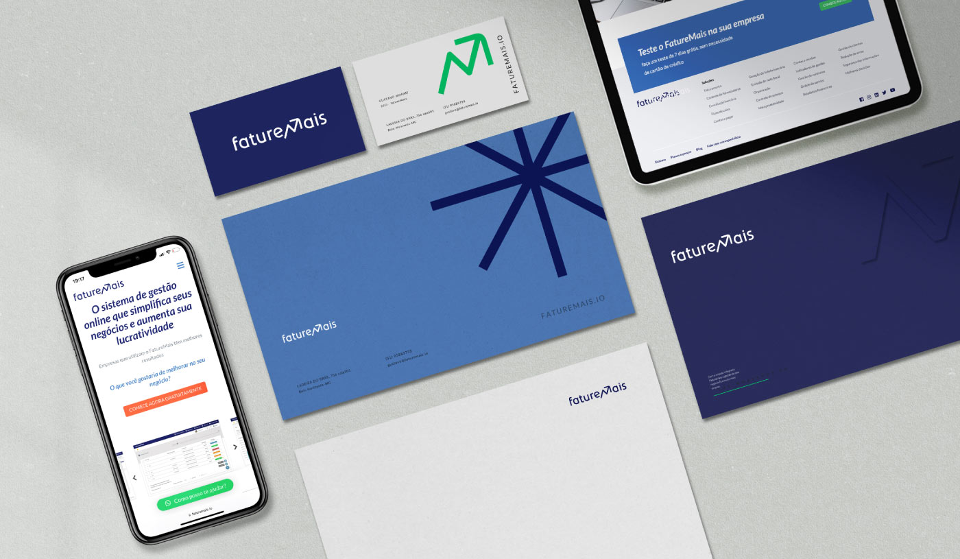For the FatureMais brand, we designed a visual identity that translates the platform's core: simplifying financial management and driving growth for small businesses. Starting with the concept of "Innovation to make life simpler," we created a visual system that clearly and effectively conveys the brand's values.