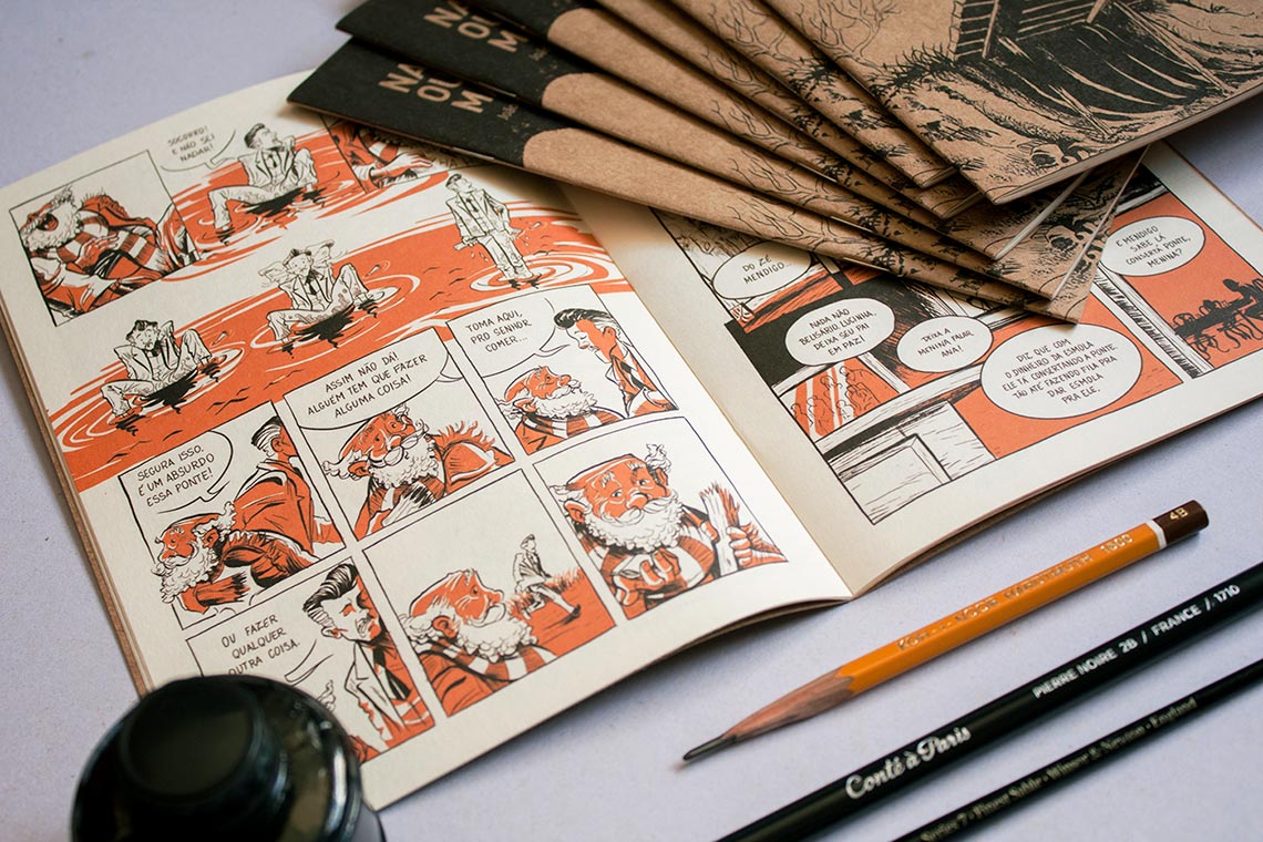 Numa pequena cidade do interior, uma ponte caindo aos pedaços une mais que duas margens, une histórias e pessoas comuns. A partir dessa personagem - a ponte - várias dessas histórias levam o mendigo Zé da Ponte numa jornada única."Na Outra Margem, lançado em 2015, foi o primeiro trabalho lançado por mim onde assino toda a autoria (roteiro e desenhos).